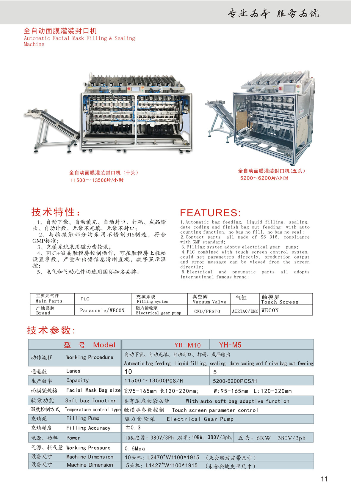 Electrical and pneumatic parts all adopts international famous brands